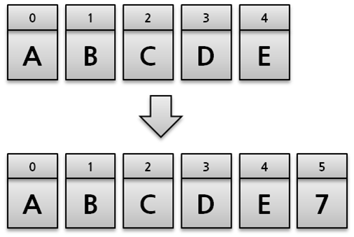 a.splice(5, 0, "7");참고로 위의 코드에서 인덱스 5 대신 5이상의 값을 사용해도 결과는 동일합니다.
