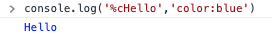 console.log() 메서드 출력결과에 스타일을 적용하려면, CSS형식지정자를 적용해야 합니다.console.log('%cHello', 'color:blue');